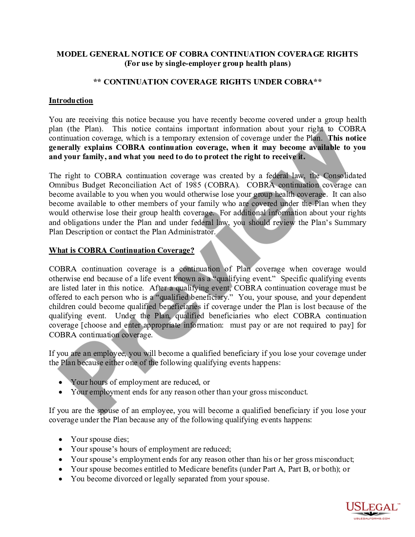 Model COBRA Continuation Coverage Election Notice Cobra